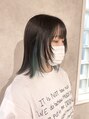 【気に入っていただけたスタイルはブックマークをしてご提示ください】ターコイズグリーンのインナーカラーと切り込んだ顔まわりカットがポイント!似合わせて切らせていただきます!(藤沢/藤沢美容室/ハイトーン/ブリーチ/ダブルカラー/ケアブリーチ/カラー)