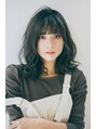 肩下のワンレンベースに前髪を少し厚めにつくった Aラインシルエットのスタイル。カラーは中明度のチョコブラウンで大人っぽく。