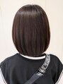 ショートから伸ばしているので、表面にレイヤーが残っている状態だったので襟足の重さと表面の軽さのバランスを見ながらカットしています