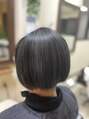 ツーブロックショートボブにコントラストの効いたハイライトでクールな雰囲気に白髪隠しにもおすすめ