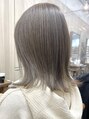 切りっぱなしの外はねにトップをレイヤーで動きを出す。全体にシークレットハイライトを入れて、8アッシュと10モノトーンで透明感あふれるカラーにしてます。