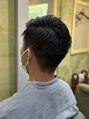 サイドを2ブロック、バックを刈り上げを入れて、前髪は上げて流すベリーショートスタイルです!