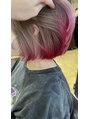 1ブリーチ(髪質や履歴によっては2ブリーチ必要)+インナーはに濃いめピンクの裾カラー+表面はピンクのグラデーション!こうゆうデザインにしておけばボブの長さでもアレンジ次第でカラーの表情が変わるので素敵です◎