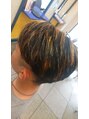 毛量調整 有りのスタイルの為 毛先にいくにしたがって ハイライトが目立ちにくくなってしまわないように ある程度の太さで ハイライトを入れました。
