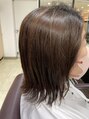 癖があるので、あまり軽くしないで、毛先に段を入れて動きがでるようにしました。