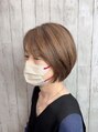 まとまりの良さと、髪質を選ばない取り入れやすが人気の【大人可愛い】ショートスタイル♪ 簡単にキマる美シルエットが嬉しい!気になる白髪も、明るめベースカラーと【白髪ぼかしハイライト】で華やかに◎ 幅広い世代に支持される王道ショートスタイル(o^^o)