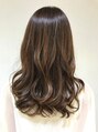 ゆる巻きしたデザイン。カットは表面に少しだけ段が入っていて巻きやすくなってます。カラーはイルミナカラーのサファリ(ベージュ系)を使用しています。艶があり、ダメージも少ないので、おすすめです。