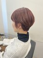 美髪シアーカラーピンクブラウンショートカット切りっぱなしボブ