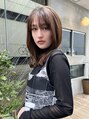 トップのレイヤーをふんわりスタイリングする事で、緩めにくびれたシルエットになりフェミニンな印象のミディアム。小顔効果の目にかかる長さのシースルーバングは幼い印象にならずに大人っぽく仕上がります。#青山美容室 #青山 #表参道 #表参道美容室