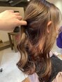 ブリーチなしでポイントカラー!赤みカラーは、ブラウンベージュとの相性最高です(^^)/