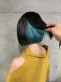 インナーカラー ターコイズブルー 切りっぱなしカット/ホットペッパービューティー