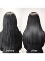 こちらのお客様は[髪のうねり ・パサつき ・まとまらない]といった悩みをお持ちでした。お悩みの原因は、「髪の水分不足」「髪密度の低下」がありました。そこで、Luccaでは水素ヘアエステをご提案して髪の水分量へのアプローチと毛髪バランスの調整しました