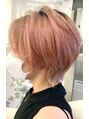 ダブルカラーでピンク系カラーをオン!薄いピンク感がおしゃれです!スタイルは前を長く残したハンサムショートにカット!