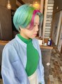 首もとすっきりハンサムショートに薄い水色のシアン、フロント周りにハイピンク、ミントを入れて個性をプラスしました。