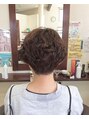 リッジ強めパーマのショートヘア。ランダムな動きと無造作感が特徴です!スタイリングも楽ちんなスタイル。