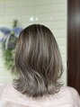 オレンジになりにくいグレージュカラーでオンカラーしてます。バレイヤージュで根元のプリンも気になりにくいです。カットはボブベースで顔まわりから繋がったレイヤーがこなれたスタイリングも楽にできます。※ブリーチ2回ベース【千葉】