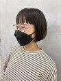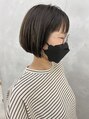 透明感あるオリーブベージュカラー。あごラインの丸みあるボブに、パツッとした前髪が大人可愛いテイストに。クセも生かせる短めのボブです。