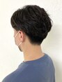 センターパートベースでサイドツーブロック、バックはグラデーションにカットし毛先に動きのあるニュアンスパーマをかけています。