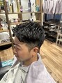 右サイドは高めに刈り上げて左サイドは2ブロックナチュラルに刈り上げて動きの出る長さでTOPを切りさりげないおしゃれに!