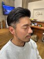 今で言う男性らしさというよりも男らしさを表現したツーブロックスタイルです。白髪混じりのままのちょっと土臭い雰囲気もスタイル出ててめっちゃカッコイイと思いませんか?雰囲気を作るのも僕たち美容師の仕事です。