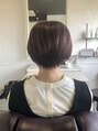 少し軽めのショートボブに、カラーは春らしく華やかさとツヤ感の出るほんのりピンク系のお色味で仕上げました。スパで根元はふわっと、毛先はしっとりまとまる調合でトリートメントさせて頂きました。