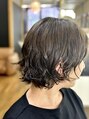 大人ウルフボブ+ニュアンスパーマ襟足ぱっつんボブにウルフカットトップはランダムにスパイラル 襟足は外ハネイルミナカラー マリーン 透明感のあるグリーン+生コラーゲントリートメント