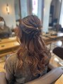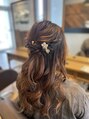 結婚式ヘアスタイル大人ハーフアップスタイル。二次会にもそのまま出かけられるように華やかさの中にも大人感を。