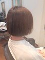 ミディアムベースの長さに、ワンレングスボブに切り、質感毛量調整を施して、軽さとまとまりを。カラーもベージュ系の色で調合をブレンドして、超音波トリートメントもして色の持ちと再現性を良くしていきます。