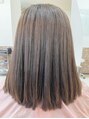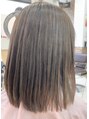 鎖骨ラインのミディアムボブ。かんたんストレートで全体をボリュームダウン。10トーンのアッシュベージュで柔らかい印象に。アメージングトリートメントをカラー同時施術でなめらかな手触りに。