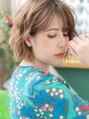 【スタイルは★ブックマーク★が便利】ナチュラルボブからのイメチェンにオススメのくせ毛風フェミニンボブ。無造作パーマと斜めバングで抜け感演出。耳かけや厚めバングも大人かわいい。前下がりボブや大人ボブも人気の髪型。(メイク担当:北浦和店 棟方)