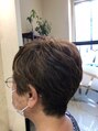 オレンジ系ブラウンヘアマニキュアのショートスタイルです。