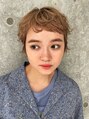一度ケアブリーチをしてからヘアカラーを被せる事で外国人のような透明感を。ふわやわなショートはピアスなどのアクセサリーとの相性も◎似合わせショートはお任せください。