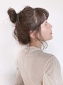 コテでざっくり巻いた後にゆるくお団子でまとめました【気に入ったスタイルは「ブックマークする」ボタンを押して、ご来店時ご提示ください】セシルカット,オルチャンヘア,ツートーンカラー,シルキー,ペールピンク,前髪編み込み,ダークグレージュ