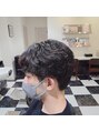 サイドとネープは自然かつすっきりツーブロックと刈り上げにトップは長さを残しやや緩めながらもカール感が出るようパーマをかけかっこよくオシャレに