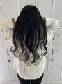 肩の長さからロングにエクステを装着。ハイライトにホワイト系を入れました。