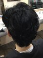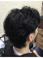 毛先が少し流れる感じのセンターパートカルマパーマです。