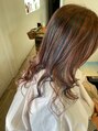 ハイライト部分にブルーのカラートリートメントをのせ、全体的にピンク系のカラーで差をつけて個性的に♪