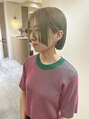 切りっぱなしボブに、ホワイティベージュからグリーンへのルームカラーです♪グリーンはエメラルドグリーンに色落ちします♪