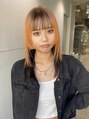 アンブレラ部(表面)のみブリーチをして、オレンジベージュのルーツカラーに◎ インナーに黒を残すことで立体感が出るので、おすすめです。