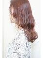 顔だち、髪質にあわせて似合う暖色の外国人風スタイル。顔まわりのカール感、全体のウェーブ、肌の色よりうきでるようなサーモンウォームなベージュカラー。全体が相まって、いい感じです。