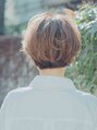 動きのあるカジュアルなショートです。表面に大きめのカールで動きを出し、カラーは明るめのブラウンで、前髪を眉上にすることで明るく軽い印象を与えます。パーマで動きを出すのもおすすめです。