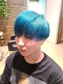 メンズカットブルー寒色カラー×マッシュスタイルツヤ髪