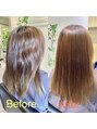 酸性ストレート Before After です。複雑な髪の履歴があっても艶髪になります!酸性ストレートは時間をかけて浸透させるので、施術枠を4時間とさせていただいております。時間に余裕を持ってご予約お願いいたします。