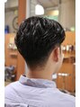 流しやすいようにパーマを当てた2ブロックスタイルです。清潔感のある印象でビシネスシーンにもピッタリですね!