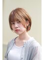 自然に丸くて柔らかな質感のボブスタイルです。カラーは明るめのブラウンにグレージュで透けてより綺麗に見える様に配合してあります。耳に掛けても可愛いくて、あえてショート風に見せられるのも飽きっぽい方には是非おすすめです。