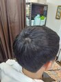 トップ中心部分周りからトップ&サイドの元気な毛髪を根元のみ矯正パーマでボリュームダウンさせてます。方向付けて流れをコントロールもできますよ。学生用格安メニューも用意してますので、ご相談ください。