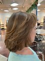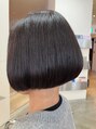 まさに洗練されたカットライン。ツヤツヤグレイのシンプルボブ