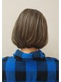クセの強い髪の毛を軽くせずに重さを残し、ストレートアイロンで仕上げてもしっかりとボリュームがでるようにしています。カラーは全体にハイライトを入れてから、アッシュグレージュにしました。