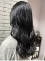 【モモカ】艶髪ブラック×コテ巻き風パーマ