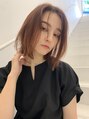 アプリコットオレンジ細めハイライト大人ボブ切りっぱなしボブ/ホットペッパービューティー